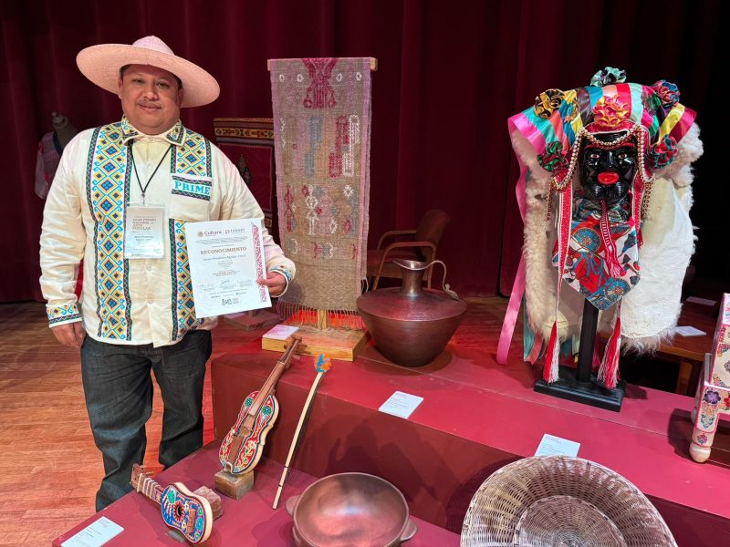 San Juan Nuevo, Michoacán, a 25 de octubre de 2025.— El artesano Jesús Primitivo Aguilar Toral, originario de San Juan Nuevo, obtuvo el primer lugar en la categoría de máscaras durante el Gran Premio del Arte Popular 2025, reconocimiento que enorgullece a la comunidad por su talento y dedicación.